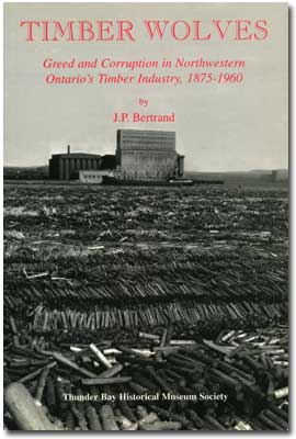 The ambiguous relationship between logging and mining interests is central to the discussion in much of the book. In the early twentieth century, says Bertrand, “Timber operators at the Canadian Lakehead were not devoid of imagination.” (49) They took the view that patented mining locations carried with them timber rights with no stumpage dues, and this, therefore, seemed to be an open invitation to ship pulpwood to American mills. This led to mining interests actually being unofficially, but systematically, engaged in lumber operations making for a rampant series of expansions of the mining frontier, largely for this secondary purpose. Wolves move in packs and Bertrand points to the importance of the patronage and profit making abilities of the “old Tory Timber ring” in the first two decades of the century (87-90, 144). The abuses were finally addressed in the Royal Timber Commission enquiry of 1920.
