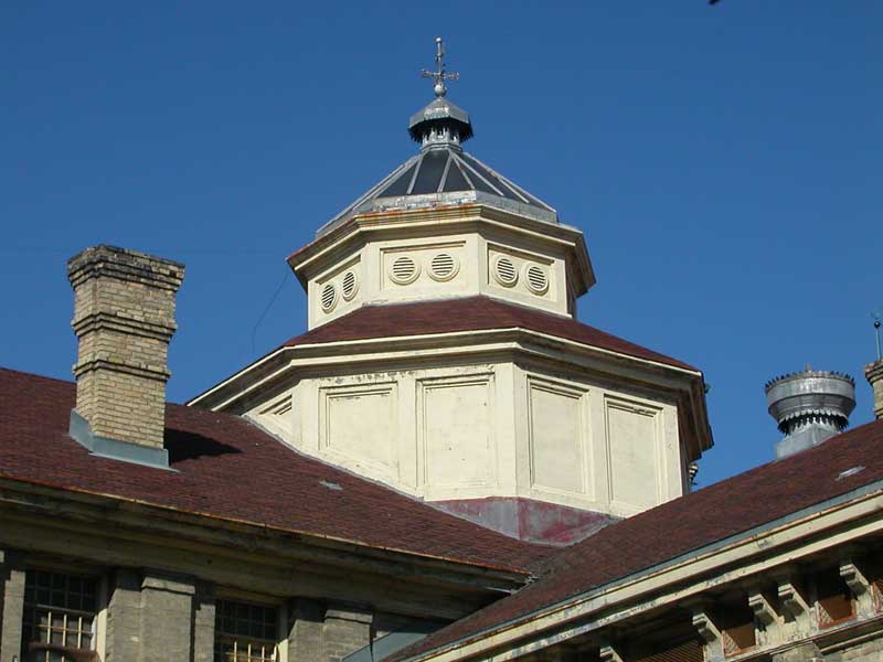 The city hired provincial architect Samuel Hooper to oversee renovations in 1909 and 1910, and to extend the south wing by 100 feet. Hooper, who was not interested in preserving buildings in their original state, incorporated new architectural designs that were popular at the time. This is probably when some of the finer details from the façade were removed, including the balcony, the nameplate above the door, and the truncated third storey. In their place he added a plainer face to the north wing and had the title of the building changed to “Provincial Gaol” which now could be read more easily from the street. The rotunda received a “handsome three stage cupola with weathervane” to avoid an otherwise abrupt conjunction between this section and the new three storey south wing. [22] All the wooden cells were removed and replaced with steel and, with the change in jailor’s residence, the front of the building could now serve as a general entranceway. The residence was converted into the warden and turnkey’s offices. Eventually, this building was considered a “modern marvel” for its ingenuity and efficiency of space. [23]