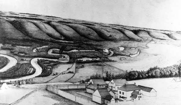 A sketch of Fort Ellice by P. H. Dumais, June 1882.
