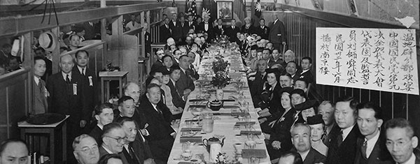 Delegates to the ninth national convention of the Chinese Nationalist League of Canada, held in Winnipeg in early June 1943, seen here in a banquet for Liu Shih Shun at the New Nanking restaurant, were reported to have “demanded full franchise for Canadianborn Chinese and relaxation of barriers preventing Chinese immigration to Canada” (Winnipeg Free Press, 12 December 1943). They also reminded Canadians of the many men of Chinese descent serving in the Canadian Armed Forces at the time.