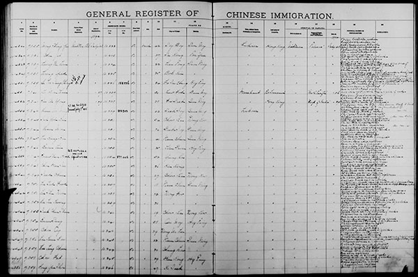 Source: Library and Archives Canada, General Register of Chinese Immigration, Serial No. 14328, 1892.