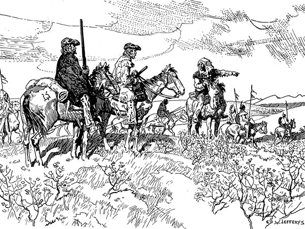 The La Vérendrye brothers in sight of western mountains, 1743.