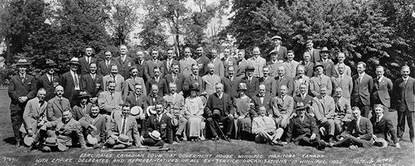 Sir Douglas Haig (1861-1928), Earl of Bemersyde and Commander of the British Expeditionary Force during most of the First World War, met with representatives of local military organizations on the grounds of Manitoba’s Government House on 7 July 1925.