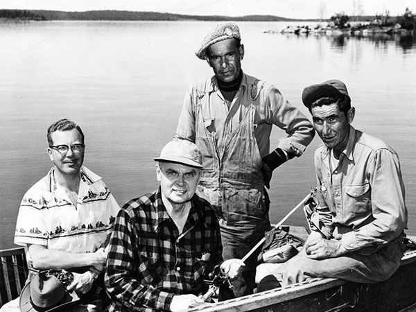 Fishing for votes? Provincial Conservative leader Duff Roblin fishes with his federal counterpart John “Dief” Diefenbaker, along with two guides, in June 1957.