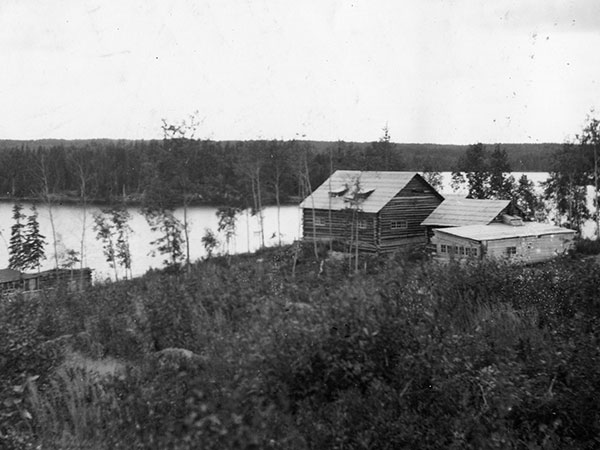 Site of the original discovery of what would become the HBM&S mine at Flin Flon, early 1920s. Although this image captures the natural beauty of the area, it would not look like this much longer. The lake in the background was later drained, all greenery was destroyed, and the area was completely altered by 1930.