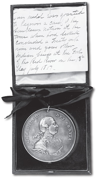Peguis’ Treaty Medal. A medal presented to Peguis by Lord Selkirk at the conclusion of their 1817 treaty featured the likeness of British monarch George III (1738–1820).