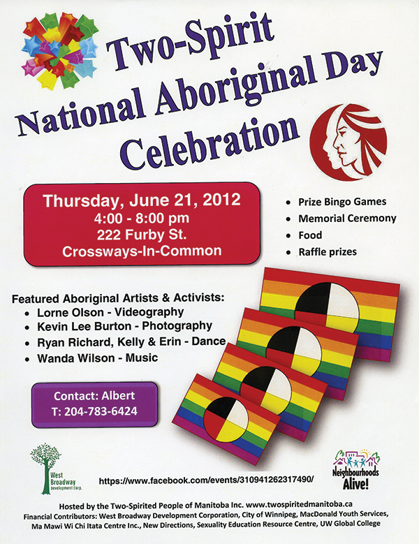 Two-Spirit National Aboriginal Day Celebration poster, 2012.