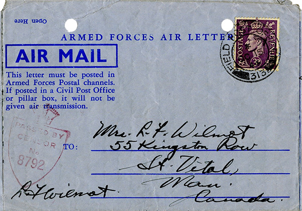 Most of the wartime letters between Laurence and Hope Wilmot used the standard Armed Forces Air Letter forms seen here.