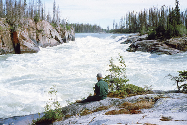 Surveyor Al Millar contemplates the dramatic east channel of Whitemud Falls. This section of the upper Nelson River required a