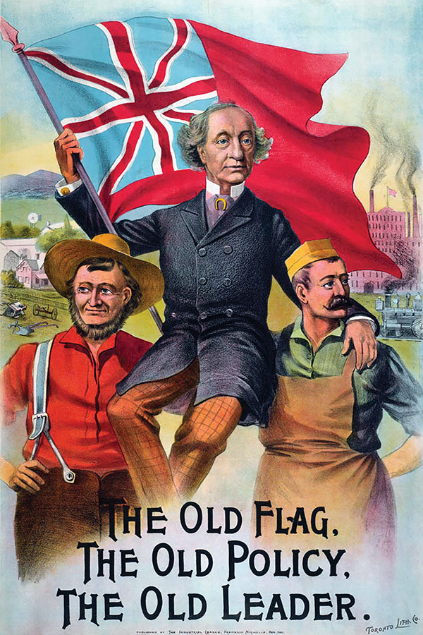 “The Old Flag – The Old Policy – The Old Leader,” the slogan on a poster for John A. Macdonald’s 1891 election campaign. Macdonald’s views on tariffs, the building of the Canadian Pacific Railway, and the promotion of immigration to the West—the National Policy of 1879—were a cornerstone of the Expansionist Movement that George Bryce supported.