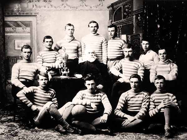 George Bryce with the Manitoba College football team, 1890–1891. An author and scholar, Bryce was “part of the wider ideology of the Expansionist Movement in the later 1800s, as evidenced by his middle-class imperialist views of Canada and Canadian identity.”