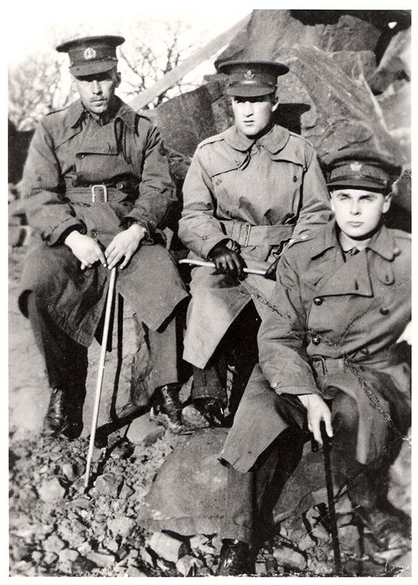 My copy of Manitoba History #86 arrived yesterday and, lo and behold, there on the cover was the Roll of Honour of Wesley College which includes my Uncle Jon Einarsson, the first Canadian-born member of our family, who was killed at Passchendaele. I didn’t know such a roll existed. Here is a picture of him overseas: he is on the left and I think you will recognize the man on the right [a youthful John Diefenbaker]. The chap in the middle is Allan MacMillan, who was killed at Vimy. (His brother William was Premier of Prince Edward Island from 1933 to 1935.) The three men were in the Winnipeg-based 196th “Western Universities” Battalion of the Canadian Expeditionary Force.