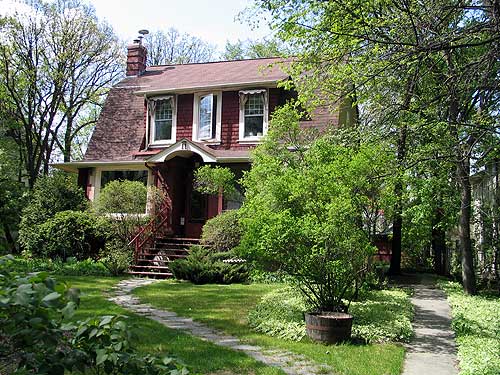A basic version of the Tudor influence built in 1905, with less use of timbering than in No. 29 Ruskin Row. The distinctive large gable faces south and there is a porch in the Tudor style. The original owner, Frederick W. Stevens, made a fortune in diamonds in Africa. (1905)
