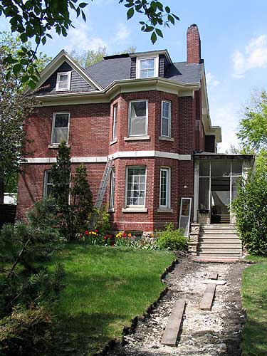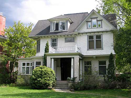 This house was built for an estimated cost of $9,000. It was built by architect W. W. Blair for his daughter Marguerite as a wedding present when she married the son of Sir William Whyte, Vice-President of the C.P.R. William Jr. was the manager of Huron and Erie Mortgage Corp. and the Canada Trust Co. Blair also designed the Roslyn Apartments at Osborne and Roslyn Road and the Warwick Apartments on Central Park, renovated by Haid and Associates. The house was considered to be very up to date in 1907. (1907)