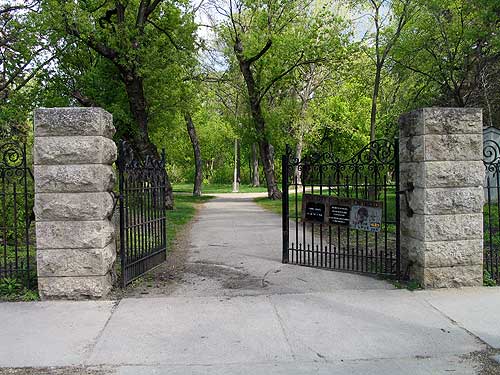 This was the site of the farm house on what used to be Munson’s farm. Through the bush which still remains on the low part of the property, an old trail leads from the forks, along the south bank of the river and out to the west. The original home, built in 1889, was renovated and modernized during the time it was owned by the James Richardson family. It had its own private swimming pool and a large kitchen garden. It was demolished in 1980.