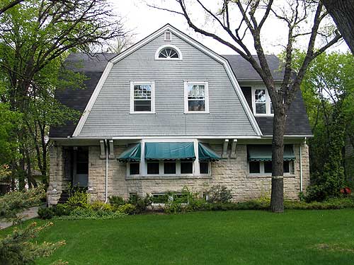 This is a good example of the Dutch colonial style popular in the pre-war period, with a large intersecting gambrel roof and a rusticated stone base. It was designed by American architect J. D. Atchison who also did the Chamber of Commerce on Lombard, the Boyd and Curry Buildings on Portage and the Wardlow Apartments. Number 16 Ruskin was built as a wedding gift for Mrs. Aimee Elliott and her husband from her father. (1908)