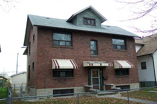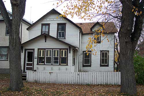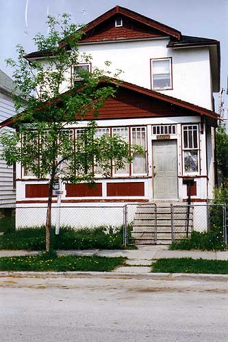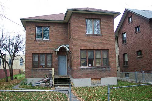 This large 2½-storey brick house had an enclosed verandah in this 2004 photo. For many years, this was the home of the Dutka family which operated small grocery stores at 138 Lorne and later 243 Austin.