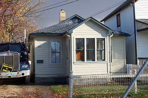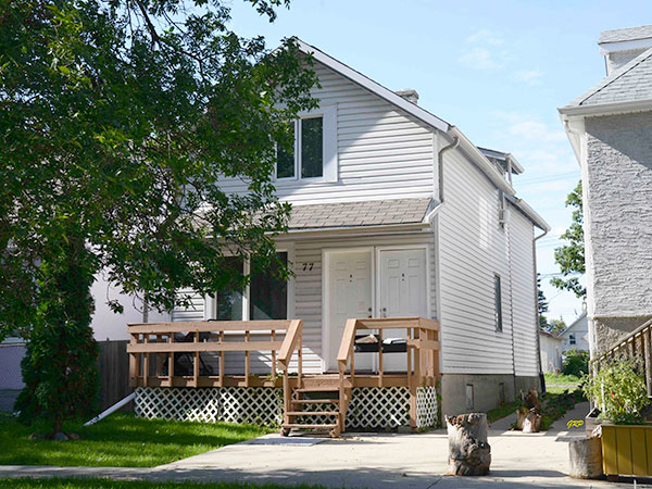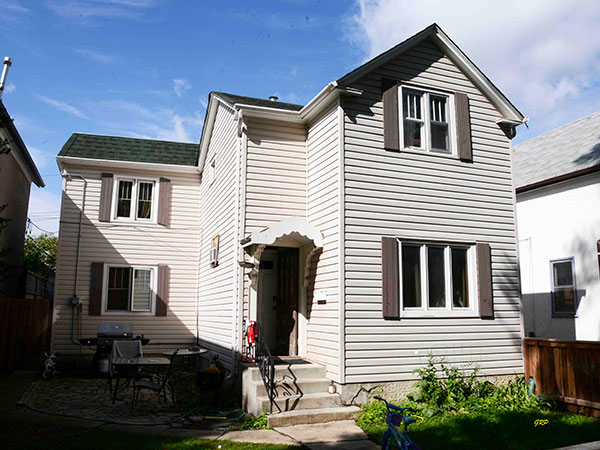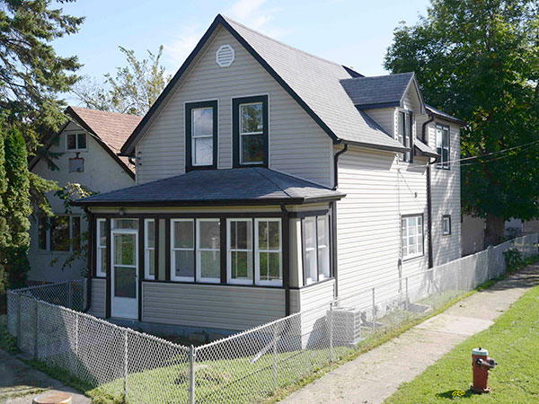 Point Douglas, like most residential areas, underwent systematic periods of renovation, a process that continues today. There are some homes that show earlier styles of retrofitting with asphalt shingle siding such as 93 Hallet Street but at 77 Barber Street we see the “modern” use of vinyl siding.