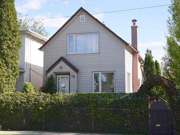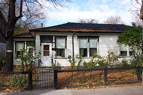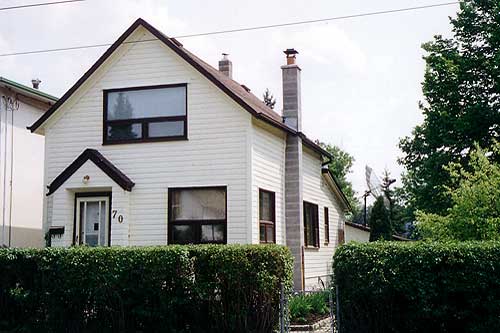 This large 1¾-storey house had cedar shingles and decorative trim on its gables in this 2004 photo.