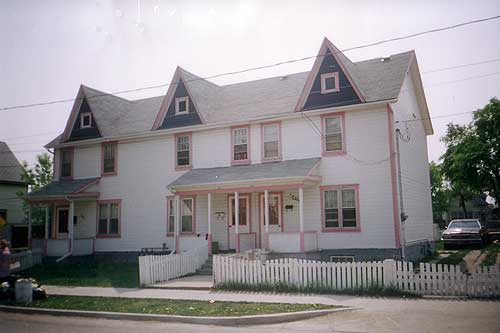 In 2004, this large two-storey duplex had two gables with decorative trim and an enclosed verandah.