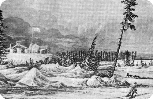“Winter view of Fort Franklin”, watercolour by George Back painted during his second overland journey with Franklin in 1825-27.