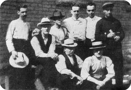 Source: Archives of Manitoba, Winnipeg Strike 35, N12322.[April 2011: Archival references that place this photo at Stony Mountain Penitentiary are incorrect if William Pritchard (top row, far right) is to be believed. In commenting on the image as it appeared in Norman Penner’s Workers Own History of the Strike, Pritchard reported that it was taken “outside the walls of the County jail, Winnipeg, not Stony Mt., 18 miles west.” See Archives of Manitoba, Jack Walker Collection, Bill Pritchard to Jack Walker, 10 November 1973, P5623, file #14. We thank Tom Mitchell for bringing Pritchard’s correction to our attention.]