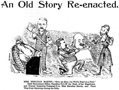 Political cartoon from The Daily Nor’Wester, June 23, 1896.