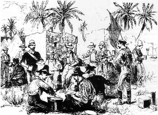 If the assignment was a difficult one for Denison and Kennedy, it was virtually impossible for the Canadian boatmen. Even before the boatmen had left Canada, the British press was claiming they could not do the job because they could not stand the heat of the desert. [29] From the beginning, they were under enormous pressure to get the troops to Khartoum in time to save Gordon, who sent several messages indicating that he could hold out only until early in the New Year. In the end, Wolseley was forced to send a portion of the troops on ahead by land, and the arrival of his men was a few days too late. Because the whole success of the expedition seemed to ride on the backs of the Canadian voyageurs, the British press (out in full force in 1884-5) was highly critical of their efforts. The World newspaper wrote sarcastically that Thames boatmen could have done as well as the Canadians and Colonel Denison took such comments personally. [30] Letters to newspapers in both Britain and Canada apparently complained that some of the Canadians were actually not experienced boatmen, and several newspaper correspondents commented negatively on the behaviour of some of the contingent. [31]