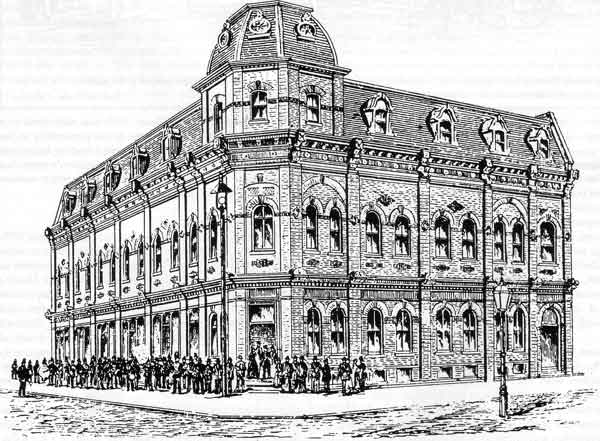 The upper story of the City Hall, completed in 1876, provided seating accommodation for about 500 people. This pretentious building was ideal for public entertainments such as dances, concerts, and other amusements, although it was far from being a particularly elegant locale. The building had hot-air heating and was lighted by oil lamps but it lacked emergency exits and there were no ordinary safeguards against fire.