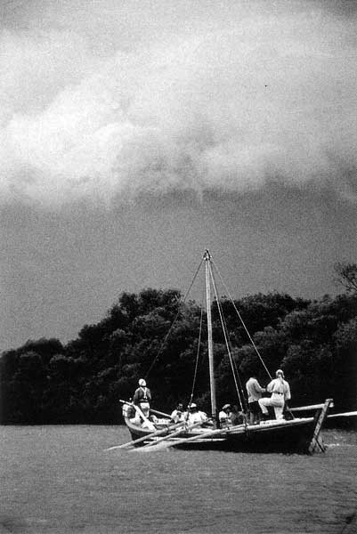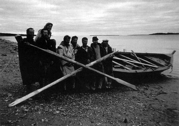 At the end of a long journey: the “Quest for the Bay” tripmen on the beach at York Factory, 30 August 2001.