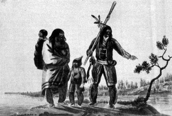 Home Guard Swampy Cree family near York Factory. Painted by the Swiss artist Peter Rindisbacher in 1821.