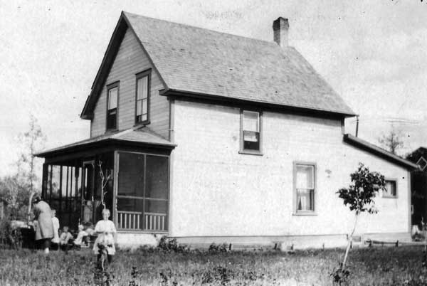 This was the original house that Bjorn and Lara Sigvaldason purchased from the Oblate Fathers. In the early 1930s, an addition was made to the house and a cement basement put in. The addition consisted of a large, new kitchen, small washroom and back entrance, as well as two bedrooms upstairs and a dormer added. The porch was rebuilt and part of it was later glassed in.
