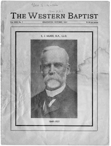 Reverend Samuel James McKee was held in such esteem that his obituary was featured on the 1937 cover of The Western Baptist.