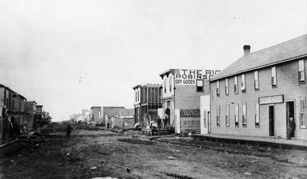 Before the end of 1881, this unassuming patch of riverside prairie had become a bustling town with hotels, grocery stores, restaurants and various outfitters popping up like crocuses on the sunny side of a hill. Now, in any normal prairie town, activity of this sort would be taking place on Main Street; or on a main street by any of the other generic names: Front Street, Railway Street, sometimes even Commercial Avenue. Even Winnipeg has a Main Street.
