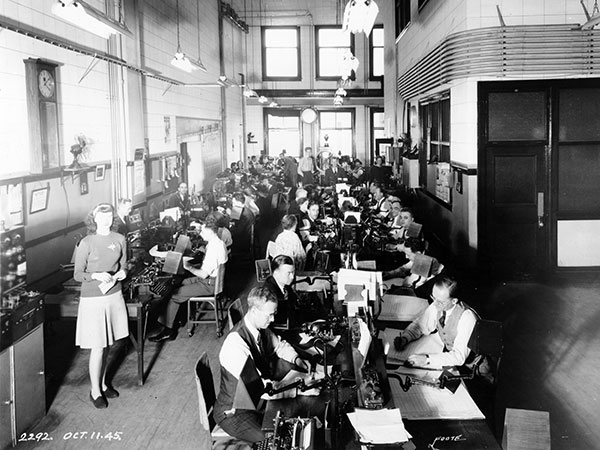 There were three sections to WN. Nearest the windows were the teletypes, four rows of typists seated in front of keyboards, transmitting telegrams to major cities in Canada and the United States.