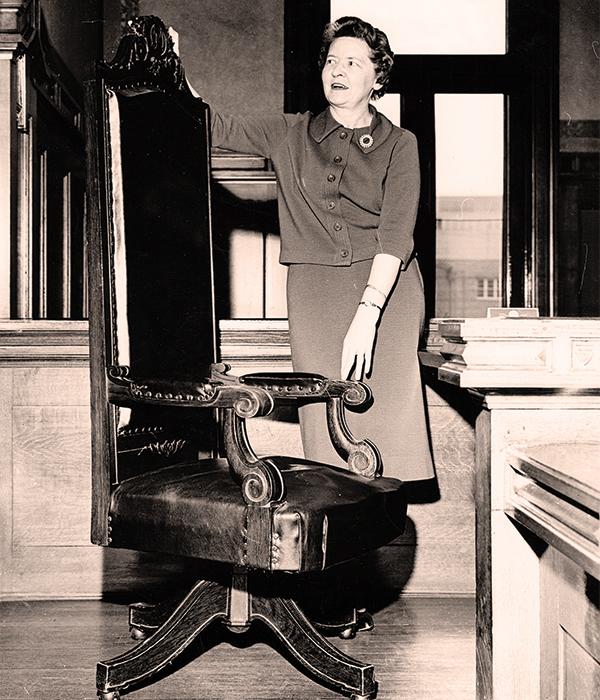 Speaker’s Chair. In 1962, Mary Inkster was photographed with the chair used in the Legislative Council chambers by her grandfather Colin Inkster (1843–1934).
