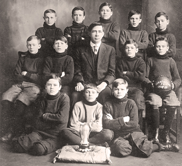 W. J. Sisler with the Strathcona Football Club, junior champions of the Winnipeg Schools League, 1915–1916.