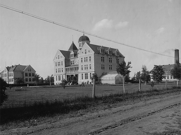During 19111915 the original concept of private rooms for the children was abandoned in favour of dormitories and several buildings were added to the School complex: a three-storey school building, containing a gymnasium and “swimming bath;” an addition to the original building, housing a bakery, laundry, and more dormitory accommodation; a blacksmith shop; a piggery; a slaughterhouse; and replacements for a barn, root house, implement shed, and granary which were destroyed by a lightning fire in 1912.