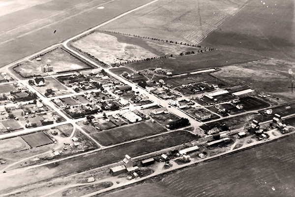 Aerial view of Briercrest. BBI would eventually expand into many of the buildings along the main commercial street before