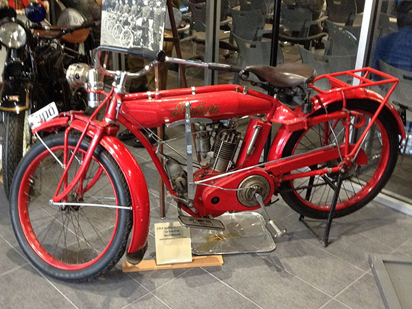 A 1913 Indian motorcycle, similar to the one ridden by Sadie Grimm, belonging to the author on display at the Winnipeg Police Museum.