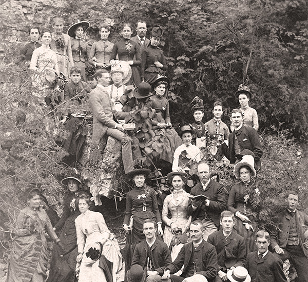 Prof. Panton’s class pauses on a botanical field trip near Elora, Ontario, circa 1881. Panton is believed to be the bearded gentleman