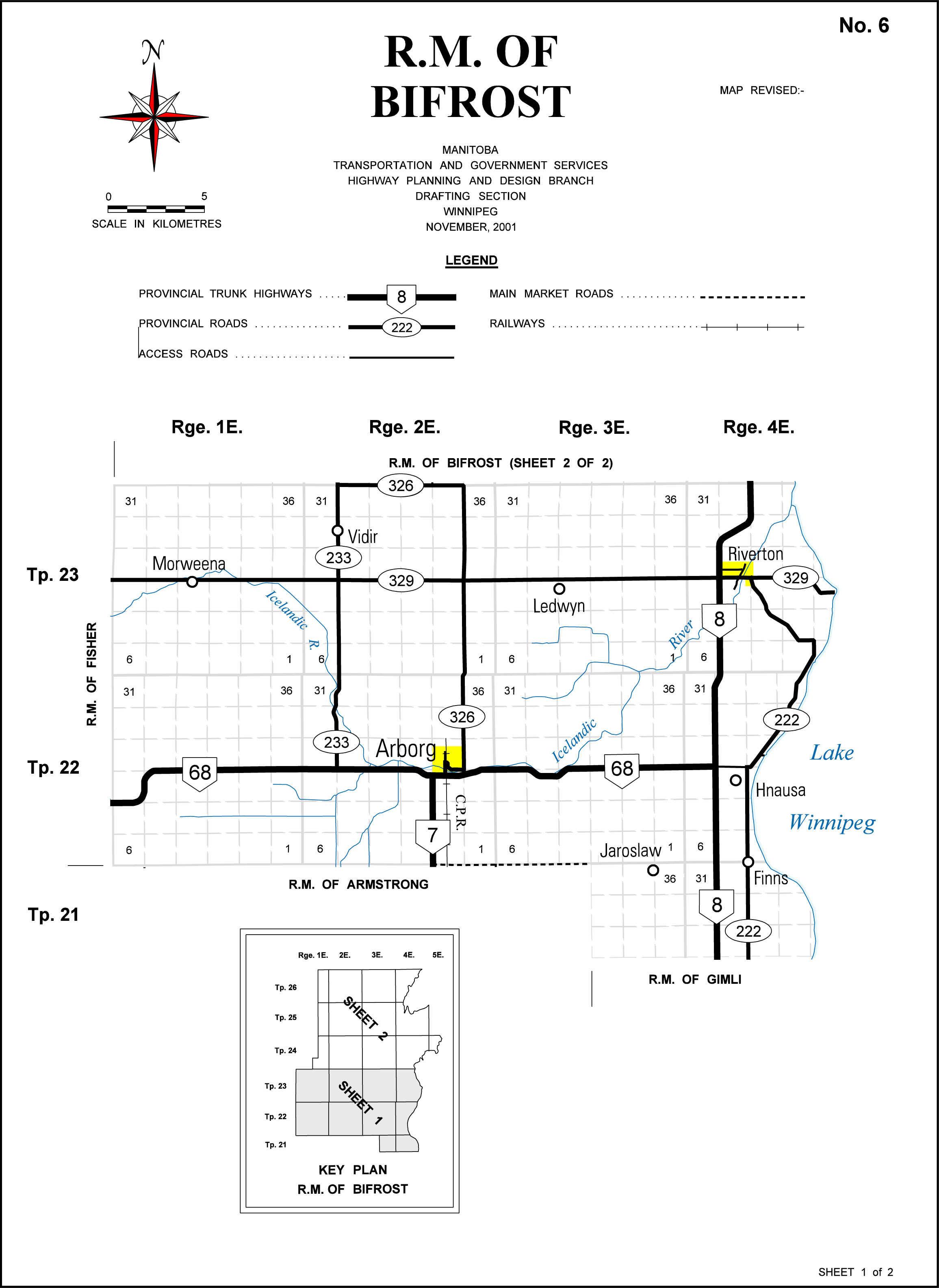 Arborg, Finns, Geysir, Hnausa, Jaroslaw, Ledwyn, Morweena, Okno, Riverton, Rosenburg, Shorncliffe, Washow Bay