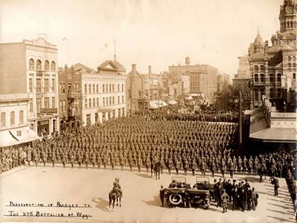 Presentation of badges to the 27th Battalion of Winnipeg (April 1915)