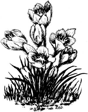 For years the prairie crocus has been a favourite with the artists. One often sees paintings of the little purple blossoms. You may have heard them referred to as the "gosling plant," or "wind flower."
