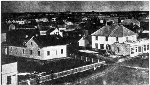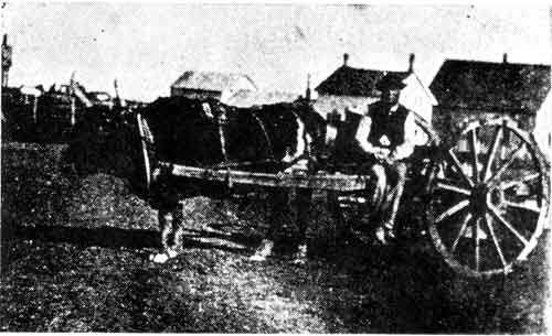 This primitive form of distributing this necessary commodity continued until the Spring of 1873, when, according to a press notice, we are told ... "Mr. George Rath is the proprietor of a new system of waterworks, which will henceforth supply citizens with the liquid element. The concern is mounted on four wheels, contains eleven barrels of water, and will be provided with forty feet of hose, by which means the water can be introduced into the houses of our citizens without the pail system. This travelling tank will be kept full each night to be used in case of fire. Rather good of Mr. Rath." Such vendors operated independently for nearly ten years.