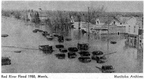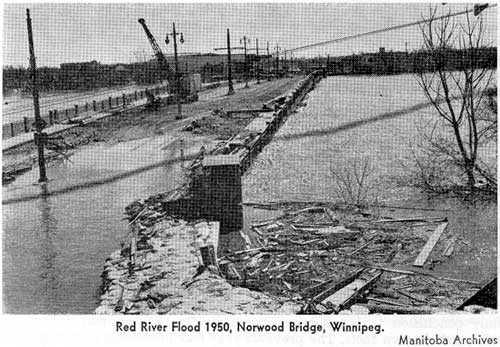 Red River flood 1950, Norwood Bridge, Winnipeg.