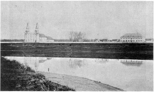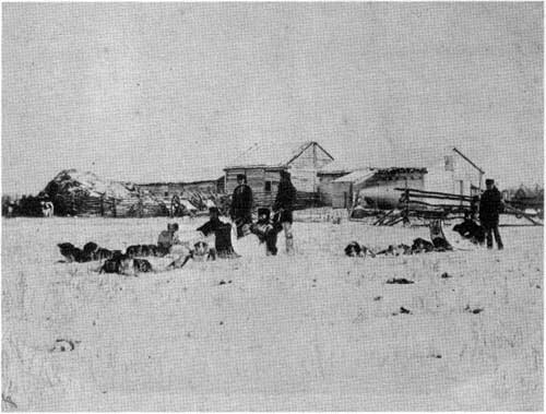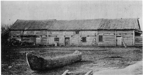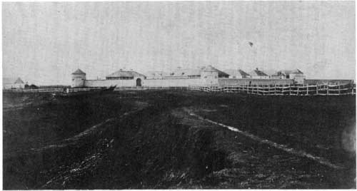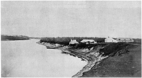 The only photo known to exist of some of the buildings which stood to the south outside the walls of Lower Fort Garry.