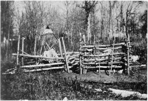 Indian Graves, covered with Birch Bark.