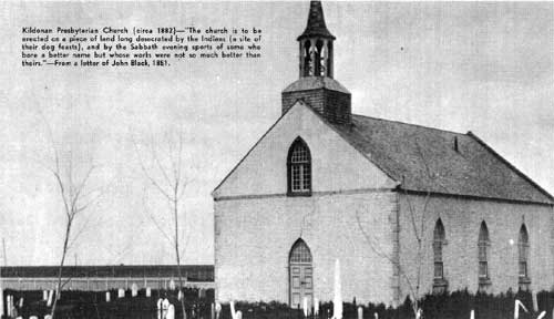 From the time of the arrival of the Reverend John West, the Hudson's Bay chaplain, in 1820, there was a mission church in the settlement. As mentioned previously, the settlers had been promised a Gaelic speaking minister of their own faith. But for reasons too many and diverse to go into here it was not until the coming of the Reverend John Black [9] in 1851 that they had their own minister and church. Prior to Black's arrival the settlers worshipped at St. John's mission, and they were most appreciative of the many kindnesses of the Anglican clergy.