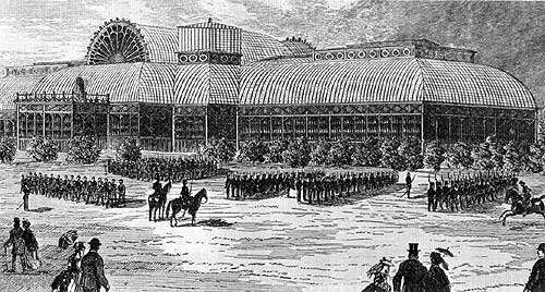 Volunteer detachments of the Red River Expeditionary Force, the 1st Ontario Rifles and the 2nd Quebec Rifles, drilling at the Crystal Palace, Toronto, 1870.